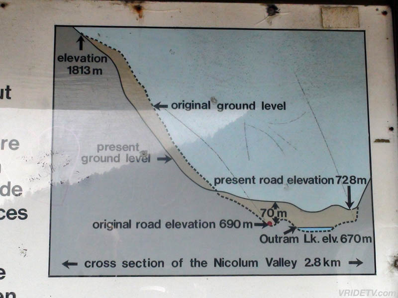 The Hope Slide point-of interest. On January 9,1965, an enormous landslide of 46 million cubic meters of earth, rock and snow, crashed down in seconds from a 2000 meter mountain near Hope, British Columbia, Canada.