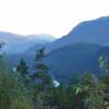 Coldwater River along side the Coquihalla Highway, and signage from Kamloops