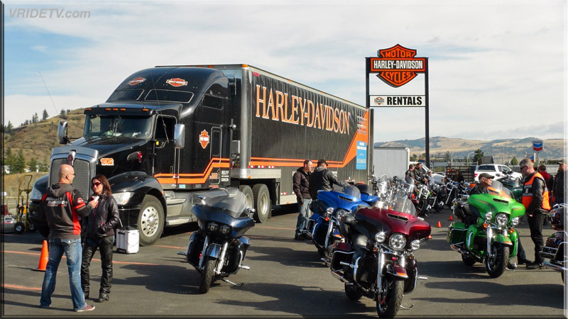 I rode to Kamloops Harley Davidson to test ride a couple of bikes during their "Test Our Metal" Demo Day. When I pulled into KHD there was a big crowd of people, 98.3 Radio was there, and so was the coolest semi to ever grace the planet.... The Harley-Davidson Semi with a trailer full of 2015 Harley-Davidson motorcycles. Hoped of my bike, went in to the dealership, filled out the registration form on a very slick computer kiosk and with in 5 minutes my name was called!