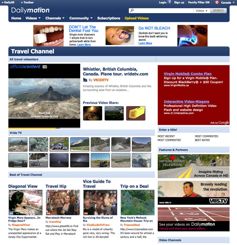 December 4th, 2009: Special thanks to Dailymotion online video, music and movie provider for posting our Whistler British Columbia plane tour video on their home page, and featuring it on the travel channel.