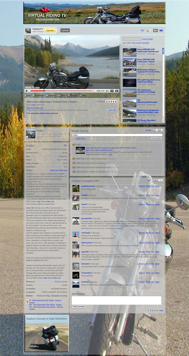 July 26th, 2009: Our Sponsor, Tilley Endurables has selected Vridetv as their "featured tale" on their home page, an additional article has also been posted on the